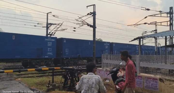 కాశీబుగ్గ ఎల్సీ గేట్ వద్ద గూడ్స్ రైలు ఆగడంతో గంటపాటు ట్రాఫిక్ జామ్