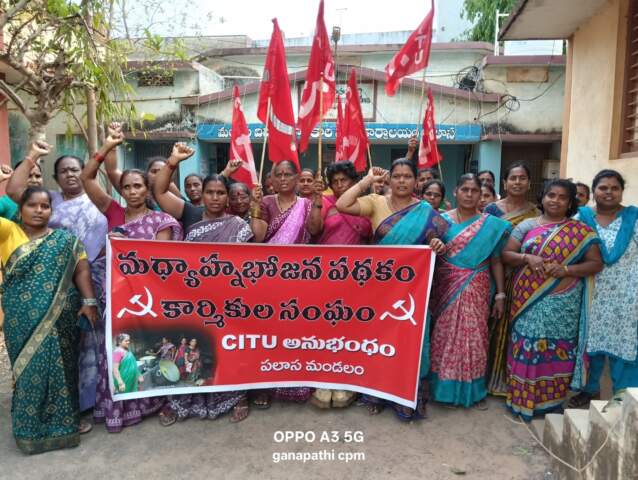 స్మార్ట్ కిచెన్లకు వ్యతిరేకంగా పలాసలో కార్మికుల ఆందోళన ; ఉపాధి భద్రత కల్పించాలని డిమాండ్