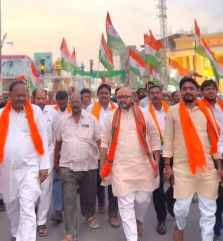 నల్గొండ పట్టణంలోని ఎన్జీ కాలేజీ నుండి క్లాక్టవర్ వరకు, ఉగ్రవాదులపై భారత సైన్యం విజయవంతంగా నిర్వహించిన “ఆపరేషన్ సింధూర్” విజయాన్ని పురస్కరించుకుని జాతీయ జెండాలతో విజయోత్సవ ర్యాలీ ఘనంగా నిర్వహించబడింది.ఈ సందర్భంగా దేశభక్తి నినాదాలతో మారుమోగిన నల్గొండ వీధుల్లో యువత ఉత్సాహంగా పాల్గొన్నారు.