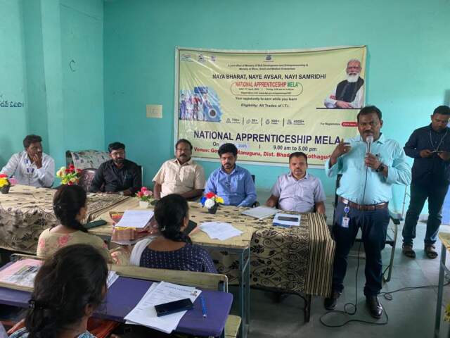 మణుగూరు ప్రభుత్వ ఐటిఐ లో సోమవారం నిర్వహించిన నేషనల్ అప్రెంటిస్ మేళా విజయవంతమైనట్లు ఐటిఐ ఇన్చార్జి ప్రిన్సిపాల్ జి రవి తెలిపారు. అయితే పూర్తి చేసిన విద్యార్థుల్లో విద్యా నైపుణ్యాలను, సాంకేతిక పరిజ్ఞానాన్ని పెంపొందించి ఉపాధి అవకాశాలు కల్పించడం కోసం ప్రభుత్వం ఏర్పాటు చేస్తున్న అప్రెంటిస్ జాబ్ మేళాలను విద్యార్థులు సద్వినియోగం చేసుకోవాలని తెలిపారు. హైదరాబాద్ కు చెందిన రాణి ఇంజన్ వాల్స్, ఫెనేనెస్ట్ బిల్డింగ్ సిస్టమ్స్, వి ఎల్ ఆర్ ఫెసిలిటేటర్స్, తదితర కంపెనీలకు చెందిన ప్రతినిధులు ఆయా కంపెనీల ఉద్యోగ వివరాలకు సంబంధించిన విషయాలను వివరించారు. ఈ అప్రెంటిస్ జాబ్ మేళాకు 115మంది హాజరు కాగా 45మందిని ఎంపిక చేయడం జరిగిందన్నారు. ఈ కార్యక్రమంలో కృష్ణ సాగర్ ఐటిఐ ప్రిన్సిపాల్ ధర్మచారి, ఎన్ ఎస్ డి సి విశ్వకర్మ జిల్లా కోఆర్డినేటర్ పల్లవి, మణుగూరు ప్రభుత్వ ఐటిఐ సూపరిండెంట్ టీ ఎన్ జ్యోతిరాణి, ఏటీవోలు జీవి కృష్ణారావు అంకం నరసయ్య, మయ్యా శ్రీనివాసరావు, వేణుగోపాల్ నాయుడు, కంపెనీల ప్రతినిధులు ధర్మ, నవీన్, బాలకృష్ణ తదితరులు పాల్గొన్నారు.