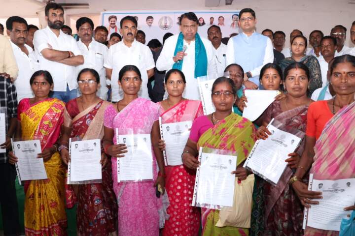 బాన్సువాడ పట్టణంలో ఇందిరమ్మ ఇళ్ల లబ్ధిదారులకు పట్టాలు పంపిణీ చేసిన జూపల్లి కృష్ణారావు