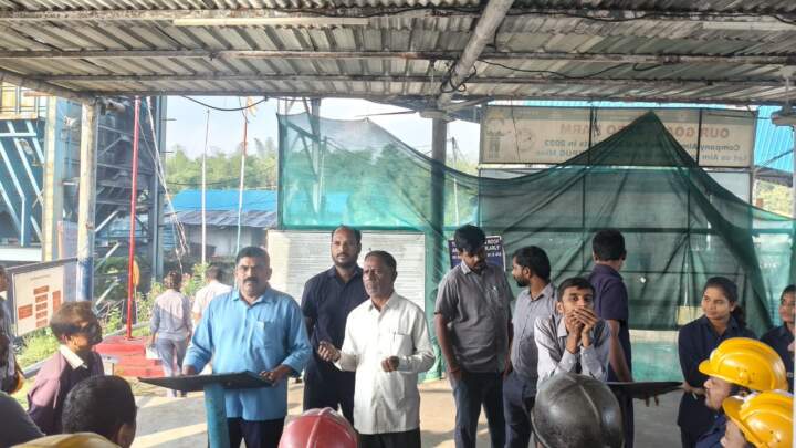 కె పి యు జి మైన్ లో పిట్ కార్యదర్శి పొదిల రామకృష్ణ అధ్వర్యలో శుక్రవారం ఉదయం జరిగిన గేట్ మీటింగ్ లో ఏరియా ఉపాధ్యక్షులు కృష్ణంరాజు ,మరియు ఏరియా బ్రాంచి కార్యదర్శి అబ్దుల్ రాహుల్ పాల్గోని ప్రసంగించారు