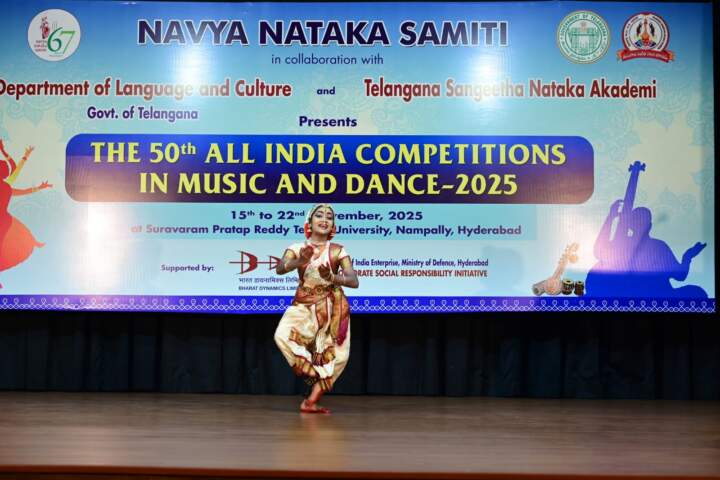 నవ్య నాటక సమితి, తెలంగాణ భాషా–సంస్కృతి శాఖ, తెలంగాణ సంగీత నాటక అకాడమీ సంయుక్తంగా నిర్వహిస్తున్న 50వ ఆల్ ఇండియా మ్యూజిక్ అండ్ డాన్స్ పోటీలు–2025 ఈ నెల 15 నుంచి 22 నవంబర్ వరకు హైదరాబాదులోని నాంపల్లిలో ఉన్న సురవరం ప్రతాప్ రెడ్డి తెలుగు విశ్వవిద్యాలయం ప్రాంగణంలో ఘనంగా ప్రారంభమయ్యాయి.