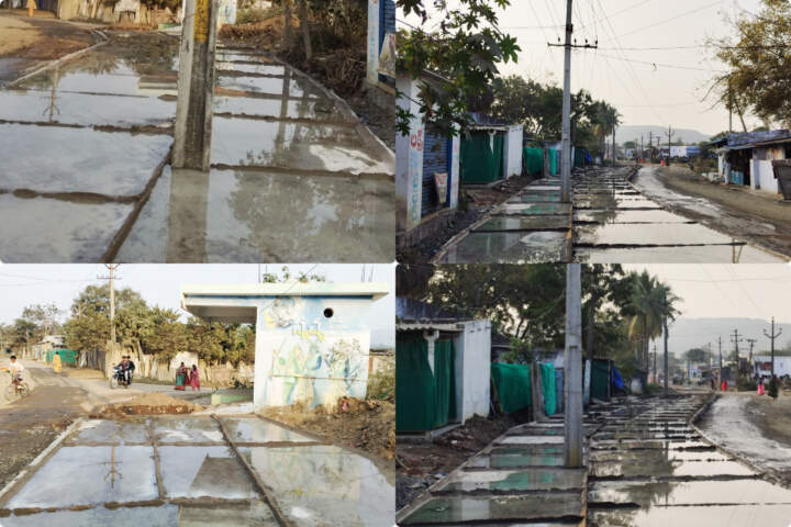 రోడ్డు మధ్యలో విద్యుత్ స్తంభాలు